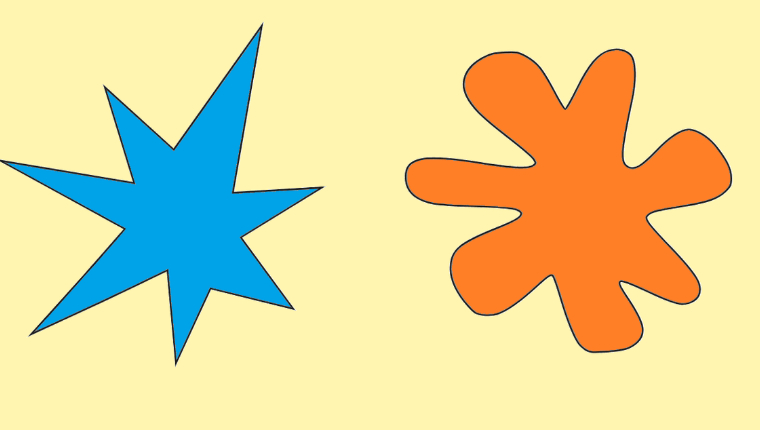 Чтобы понять, как это работает, давайте проведем мысленный эксперимент. Посмотрите на эти две фигуры. Одна из них - округлая и пухлая, похожая на амебу. Другая - угловатая, с острыми краями, как осколок стекла.